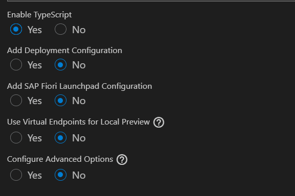 While generating the Fiori Elements application using SAP Fiori Tools, make sure to enable TypeScript support. This ensures that the extension controller you create later benefits from strong typing, better error detection, and cleaner code structure. During the project creation wizard, simply select the TypeScript option before finishing the setup.