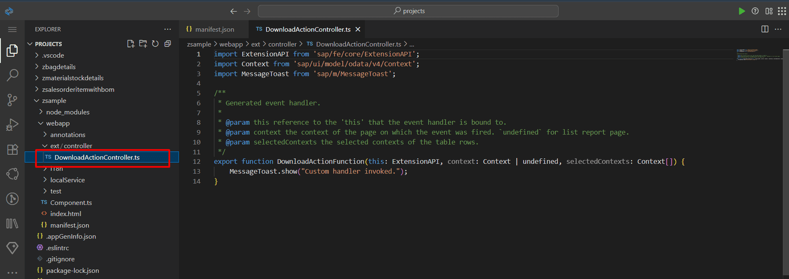 4. SAP UI5 Extension Controller for the Download Action