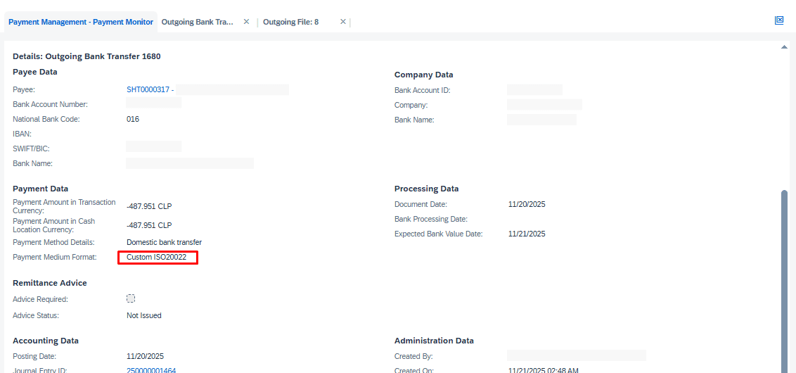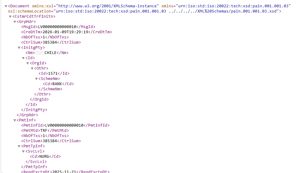 A client using SAP Business ByDesign required greater control over how their outgoing payment files were generated. Their banking processes required payment files in specific ISO 20022 CHILE (pain.001.001.03) formats, with variations depending on transaction conditions.