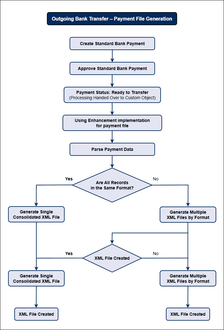 This logic ensures that payment files are accurately formatted for each bank requirement while maintaining flexibility and compliance.